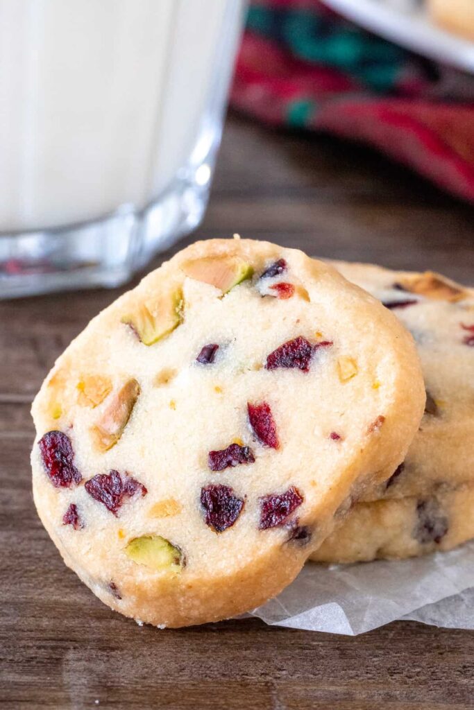 Pistachio and cranberry shortbread cookies offer a wonderful balance of flavors and textures. The butter provides richness, the pistachios add crunch and a mild nutty taste, while the cranberries contribute a sweet and slightly tangy contrast. Visually, the cookies are stunning—the green pistachios and ruby-red cranberries create a festive appearance that looks impressive with very little effort.